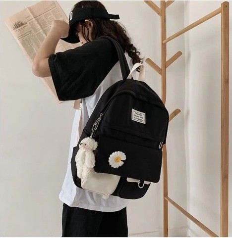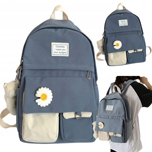 Fantastyczny plecak z breloczkiem. Jeden z najmodniejszych modeli w tym sezonie. Odpowiedni do szkoły, na wycieczki i na co dzień. Mieści format A4. Posiada jedną dużą komorę główną, kieszenie z przodu, w tym jedna na zamek, uchwyt u góry ułatwiający przenoszenie. W środku miejsce na telefon, długopisy, klucze, okulary, portfel. Komora główna rozdzielona na dwie części z możliwością odpowiedniego zabezpieczenia laptopa / tabletu.