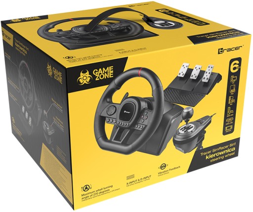 Kierownica z pedałami Tracer SimRacer 6in1 dla graczy do PC, PS4, PS3, Xone, X360, SWITCH