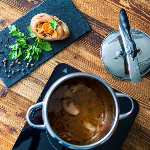 - Równomierna obróbka termiczna - wysokie ciśnienie sprawia, że ciepło jest równomiernie rozprowadzane po całym naczyniu, co pozwala na równomierne gotowanie potraw.