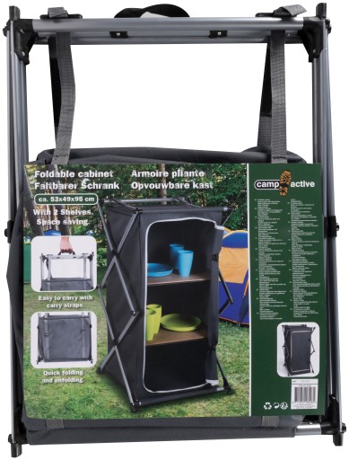SZAFA TURYSTYCZNA SKŁADANA Z 3 PÓŁKAMI 49x53x95CM CAMP ACTIVE zapewni organizację i przechowywanie niezbędnych rzeczy, takich jak naczynia, artykuły higieniczne czy jedzenie Jej konstrukcja pozwoli na szybkie rozłożenie i złożenie, co jest bardzo wygodne podczas podróży!