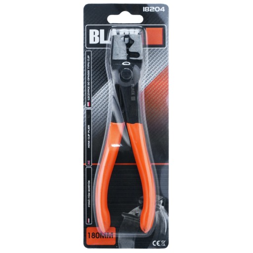 Szczypce do opasek zaciskowych marki BLACK. Doskonale sprawdzą się do montażu oraz demontażu opasek zaciskowych wielokrotnego użytku. Szczypce typu Clic oraz Clic- R znajdą swoje zastosowanie na przewodach gumowych, w układzie chłodzenia oraz w układzie dolotowym często stosowanych w markach samochodów takich jak: Mercedes, Audi, VW, Opel itd.