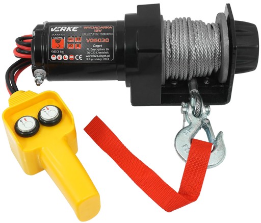 WYCIĄGARKA 12V, 2000 LBS, STALOWA LINA 12m VERKE