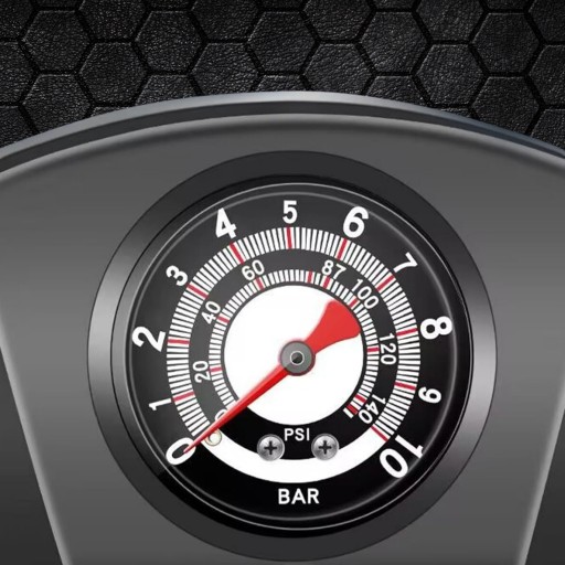 - WBUDOWANY MANOMETR W BAR I PSI- pompka ma wbudowany manometr, dzięki temu wiesz w którym momencie przestać pompować. Maksymalne ciśnienie na manometrze to 11 bar / 160 PSI.