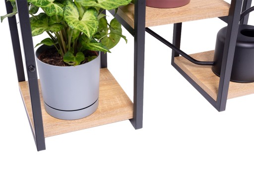 - Kwietnik metalowy na kwiaty stojący Panorama Czarny/ Dąb — do samodzielnego montażu