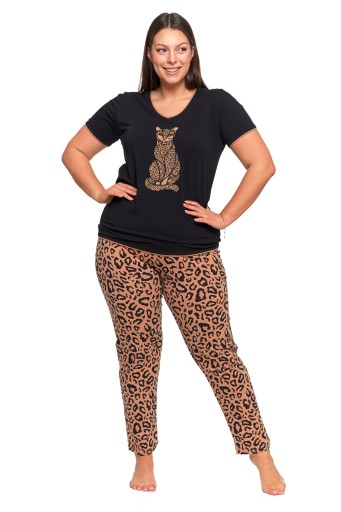 PIŻAMA DAMSKA Pantera Bawełniana Krótki Rękaw Spodnie w Panterkę MORAJ L