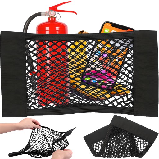 Siatka świetnie nada się do przechowywania nie tylko gaśnic czy apteczek samochodowych ale również zakupów, telefonów czy małych przedmiotów codziennego użytku.