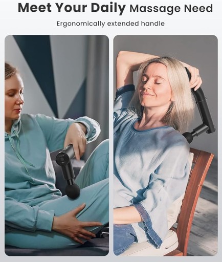 - Pistolet do masażu jest wyposażony w bezszczotkowy silnik o wysokim momencie obrotowym, który oferuje amplitudę 8 mm z siłą masażu do 30 funtów.