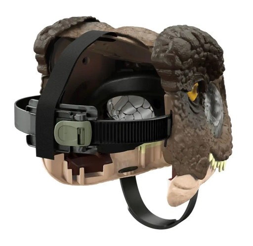 Otwory na oczy i nos zapewniają widoczność szalejącemu dinozaurowi podczas odgrywania ról
