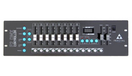 Fractal Lights F2 pozwala na zapisanie do 100 scen w pamieci urządzenia i ułożenia ich w 12 różnych programów. Kontroluje do 192 kanałów DMX, czyli aż do dwunastu 16-kanałowych urządzeń. Istnieje możliwość dostosowania prędkości i czasu przejścia odtwarzanych scen, jak i również wyzwalanie ich w rytm muzyki. Co więcej, cała pamięć zaprogramowanego sterowanika F2 może zostać skopiowana na miniaturowy panel odtwarzania F3, również dostępny w naszej ofercie.