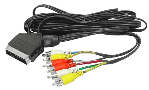 Kabel połączeniowy SCART, czyli tzw. EURO - 6 x RCA, tzw. czincz o długości 3 metrY umożliwia podłączenia źródła sygnału z urządzenia wyposażonego w złącze RCA (np.