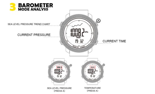 13, Korporacyjny kompas cyfrowy, wysokościomierz, barometr, termometr, trend ciśnienia powietrza i trend wysokości oraz trend wysokości