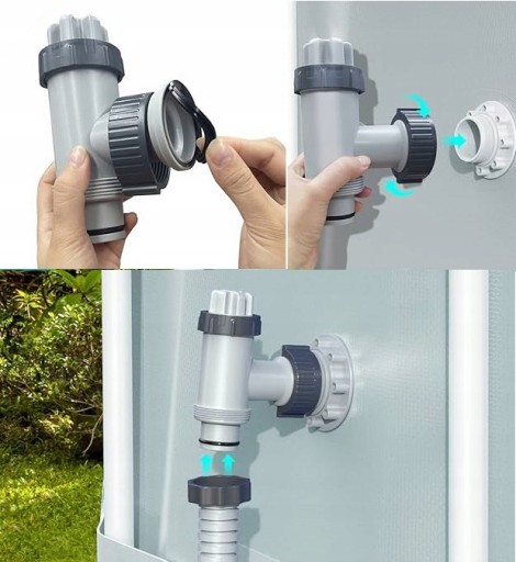✔️ Pozwala na demontaż węży bez konieczności zatykania basenu od wewnątrz.