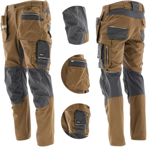 ✔️elastyczne kieszenie na kolanach w połączeniu z tkaniną kordurową, zapięcie na rzep od dołu