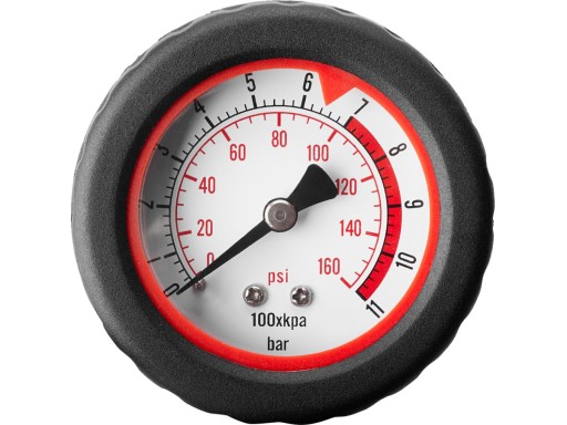 ✅ Wbudowany manometr wyskalowany aż do 11 BAR / 160 PSI, pozwoli Ci na precyzyjne dostosowanie ciśnienia. Dzięki obrotowej strzałce, możesz sobie ustalić pożądane ciśnienie dzięki czemu łatwiej będziesz mógł je kontrolować!