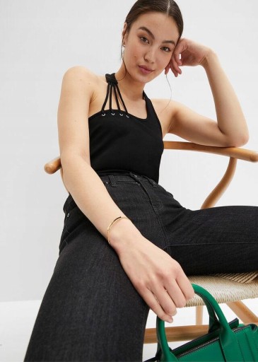 ПРИСТРАИВАЕМЫЙ ЧЕРНЫЙ ТОП С ПОЛОСАМИ Bonprix S30 44