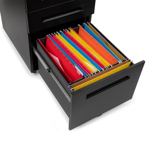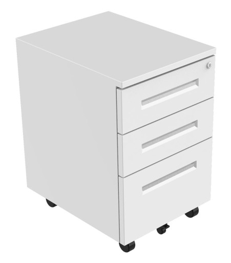 Schludna, dobrze zorganizowana przestrzeń w biurze to absolutna konieczność. Mobilny kontenerek pod biurko to idealne rozwiązanie do przechowywania dokumentów i artykułów biurowych. Wszystko, co potrzebujesz, masz pod ręką. Idealnie nadaje się zarówno do domowego biura, jak i firmy. Szafka jest wykonana z najwyższej stali malowanej proszkowo, co przekłada się na wyjątkową wytrzymałość i stabilność - rozwiązanie na lata. Prosty, nowoczesny design sprawia, że szafka doskonale pasuje do każdego wnętrza. Centralny zamek to gwarancja bezpieczeństwa. Przechowuj dokumenty i wartościowe przedmioty w jednej z zamkniętych szuflad. Dzięki zintegrowanym kółkom można ją w łatwy sposób przemieszczać. Szafka jest prawie gotowa do użycia, wystarczy, że zamonutujesz kółka (nie potrzebujesz do tego żadnych narzędzi).