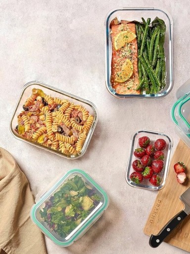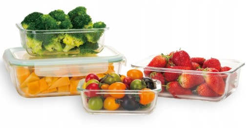- pojemniki wykonane ze szkła hartowanego, które cechuje się niezwykłą trwałością, oraz nadaje się do piekarnika, kuchenki mikrofalowej oraz zamrażarki,