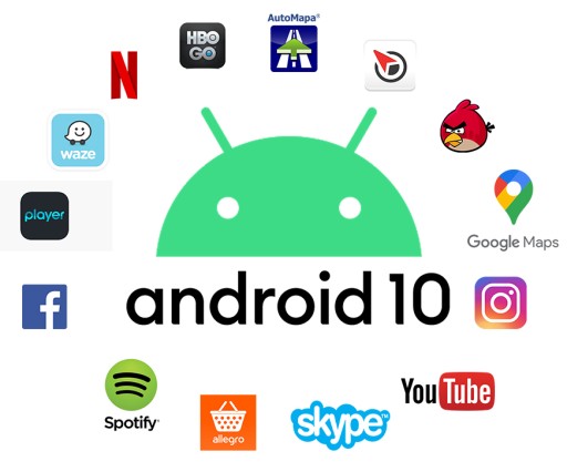 Stacja multimedialna kontrolowana przez najnowszą wersję systemu operacyjnego Android™ 10 ®.