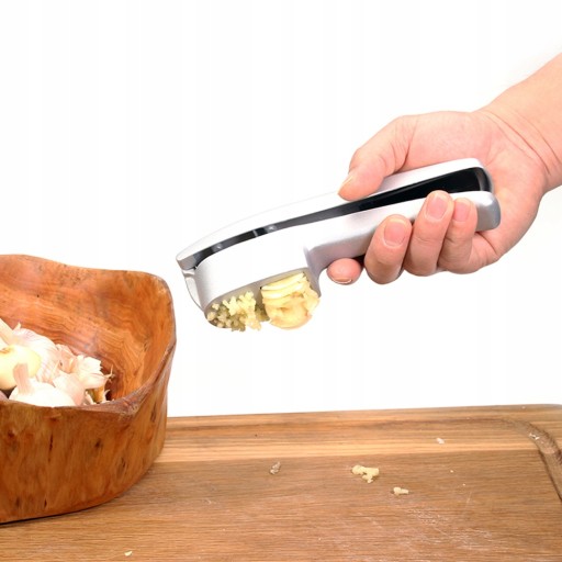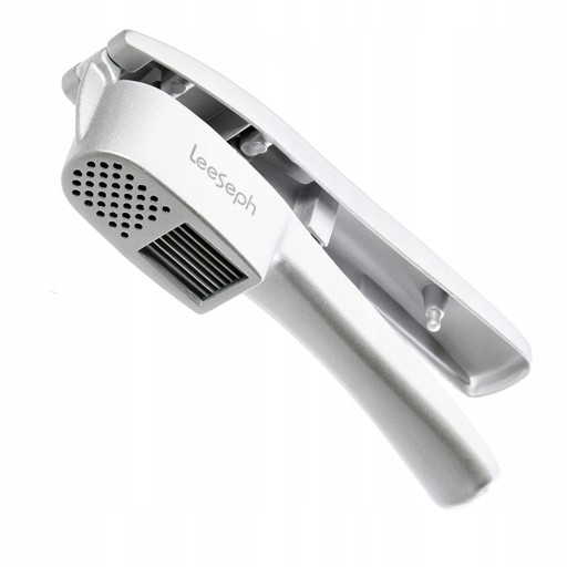 WYCISKACZ PRASKA NÓŻ do CZOSNKU WYCISKARKA METAL - 2w1 WYCISKACZ / PRASKA / NÓŻ do CZOSNKU z pewnością stanie się praktycznym pomocnikiem w twojej kuchni. Wyciskacz jest wyprodukowany aluminium. Posiada dwa otwory umożliwiające tradycyjne wyciśnięcie czosnku bądź też jego posiekanie. Kratkę można w prosty sposób wyczyścić dzięki narzędziu do czyszczenia umieszczonym w rękojeści. Produkt nie jest przeznaczony do zmywarki do naczyń.