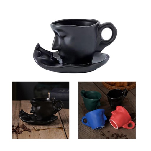 [Luksusowy]: Ceramiczny zestaw filiżanek i spodków do kawy o pojemności 260 ml/9 uncji, z unikalnym wzorem „Kiss of the Face”, który wnosi artystyczny motyw na Twój stolik w kawiarni.
