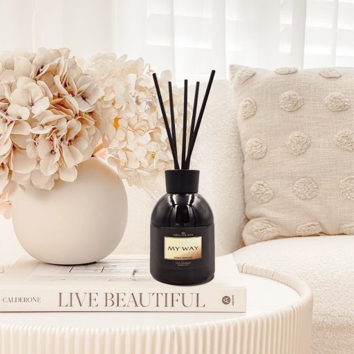 ✅ Dyfuzor zapachowy My Way zawiera substancję aromatyczną, która za pośrednictwem włożonych patyczków absorbuje płyn, napełniając pomieszczenie bardzo przytulnym aromatem.