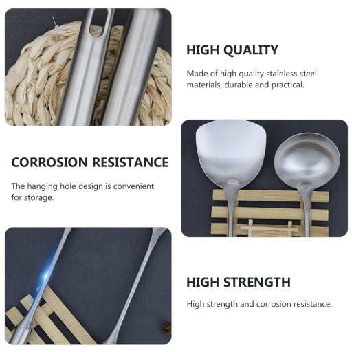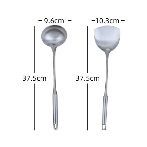 ✅Jest to zestaw 2 narzędzi kuchennych, w tym szpatułka i łyżka, które są wykonane z najwyższej jakości stali nierdzewnej, co zapewnia ich trwałe i praktyczne zastosowanie. Ten zestaw przyborów kuchennych pomoże ci przygotować pyszne jedzenie. Jeden z