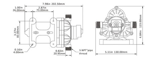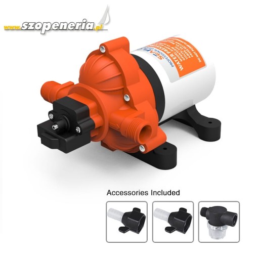 Ta 3-komorowa pompa membranowa zapewnia przepływ wody do 11,6 litrów na minutę i jest zdolna do zasysania wody ze zbiornika z wysokość 1,8 m