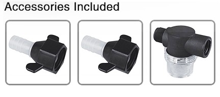 W zestawie filtr oraz nakręcane króćce na wąż 12-13 mm
