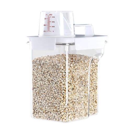 [Uniwersalny]: beczka do przechowywania ryżu doskonale nadaje się do detergentu do prania, proszku do prania, mydła w płynie, ryżu, cukru, suchej karmy, przekąsek, fasoli, karmy dla zwierząt domowych i nie tylko.