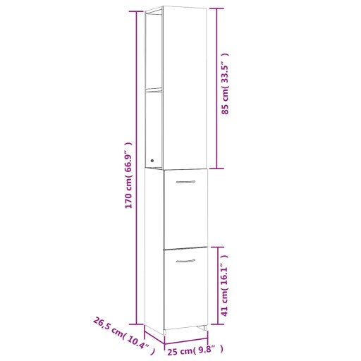 Szafka łazienkowa, biała, 25x25x170 cm, płyta wiórowa