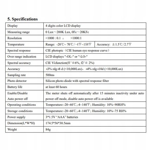 5. Wykonane z wysokiej jakości materiałów, mocne i trwałe, ma długą żywotność. Specyfikacja: Typ artykułu: Światłomierz