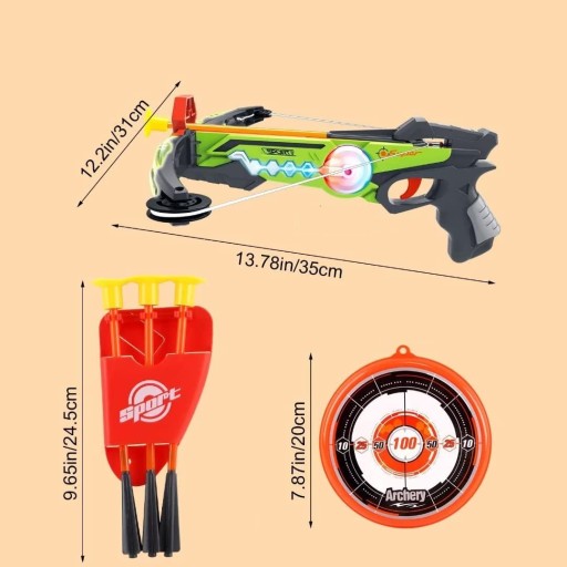 ✅Ten wspaniały zestaw do zabawy z kuszą to doskonały sposób, aby zachęcić dziecko do aktywności na świeżym powietrzu. Zawiera regulowany łuk, zabawkową kuszę, trzy strzałki z przyssawkami, kołczan i tarczę. Idealny sposób na rozwijanie umiejętności sportowych i koordynacji ręka-oko.