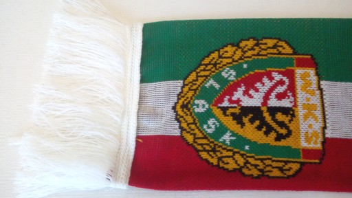 Szal ŚLĄSK WROCŁAW-dziany,dwustronny, na końcach białe frędzle.Napis na szaliku-ŚLĄSK WROCŁAW.