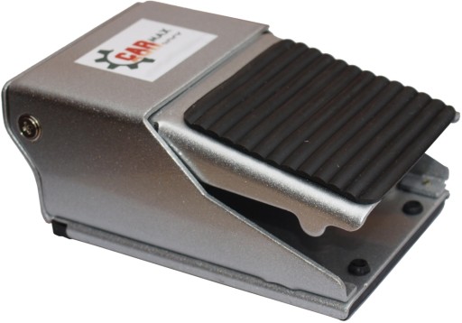 - Zawór nożny który umożliwia sterowanie prasą poprzez podłączenie sprężarki i naciskanie na pedał. Zwolnienie i powrót tłoka uzyskujemy poprzez ręczne odkręcenie zaworu upustowego na pompie.