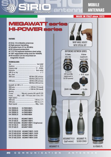 Sirio Megawatt 4000 to antena na pasmo CB 27MHz - długość 203cm. Jedna z najlepszych długich anten na rynku.