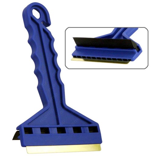 Skrobaczka lodu plus gumowa ściągaczka pary wodnej, wody, błota, mokrego śniegu. Jest doskonałą alternatywą dla skrobaczek plastikowych, które często pękają, a ich plastikowe końcówki nie są tak gładkie i zamarznięty lód je wyszczerbia. Ta skrobaczka z mosiężnym ostrzem, nie rysuje szyb i dużo szybciej się nią pracuje.