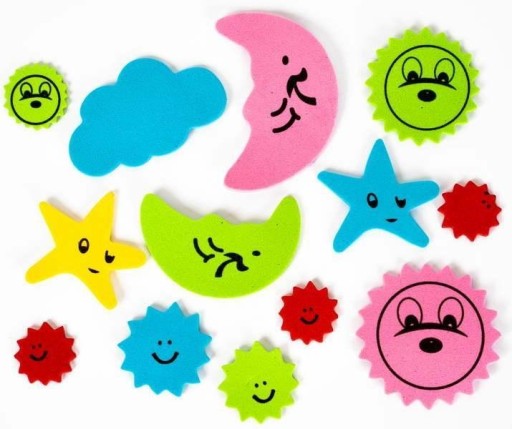 Ok. 27 szt. naklejek piankowych, rozmiar naklejki ok. 2-5 cm, grubość 2 mm