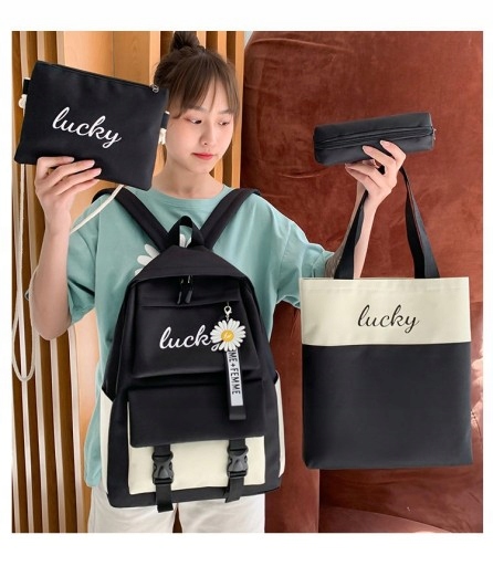 W pojemnym plecaku doskonale zmieszczą się książki i zeszyty, natomiast zgrabny piórnik w formie saszetki pomieści wszystkie niezbędne przybory piśmiennicze. Dodatkowo do zestawu dołączona jest designerska torba typu shopper, w której zmieści się np. strój gimnastyczny, jak również świetnie sprawdzi się w trakcie spacerów, bądź wycieczek z przyjaciółmi. Mała torebka "listonoszka", swoje zastosowanie znajdzie jako kosmetyczka, bądź stanie się niezawodnym miejscem na klucze, bądź inne drobne / cenne przedmioty.