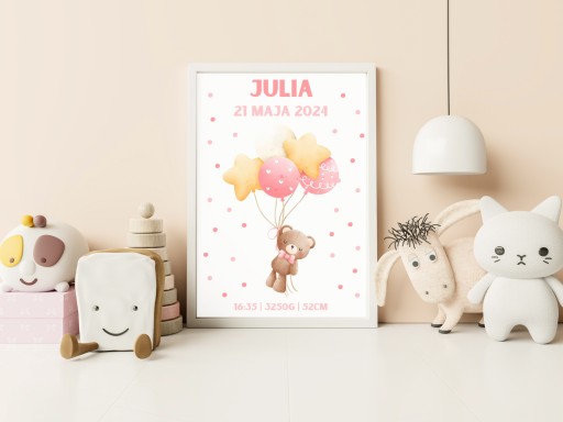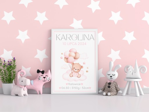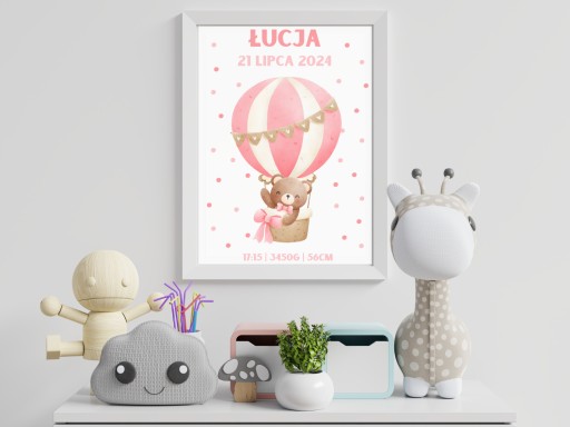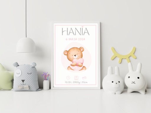 Nasza personalizowana metryczka charakteryzuje się minimalistycznym, nieprzeładowanym informacjami wzorem. Dzięki temu stanowi estetyczną ozdobę, która idealnie wkomponuje się w wystrój każdego dziecięcego pokoju, salonu czy ozdobi biurko. Prosty design z delikatnymi detalami sprawia, że metryczka przyciąga wzrok, nie dominując przy tym innych elementów wystroju. Starannie dobrane elementy graficzne oraz czytelne informacje sprawiają, że jest ona nie tylko piękną dekoracją, ale również cenną pamiątką na długie lata.
