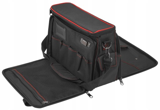 Posiada wewnętrzne i zewnętrzne kieszenie do przechowywania wkrętaków, szczypiec i innych małych narzędzi. Duża komora zamykana na zamek zapewnia wygodny dostęp do narzędzi. Szwy oraz główny zamek wykonane w wersji wzmocnionej, przystosowane do dużych obciążeń. Materiał poliester 600D.