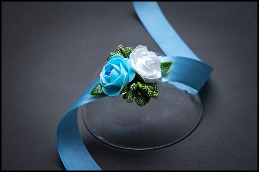 Bukieciki wykonane na efektownej szerokiej wstążce do zawiązania na rękę.