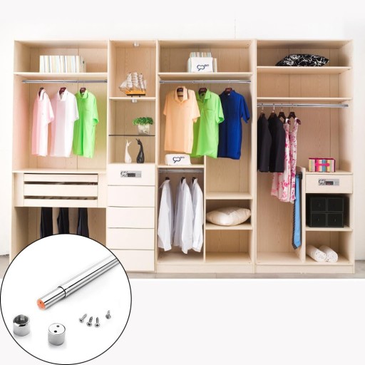 - Wystarczy przymocować kołnierz do ściany szafy za pomocą śrub, a następnie włożyć jeden koniec drążka na ubrania do kołnierza, wyregulować długość i włożyć drugi koniec drążka na ubrania do kołnierza.
