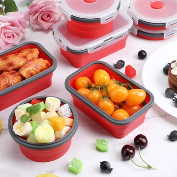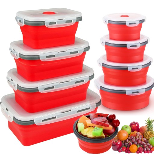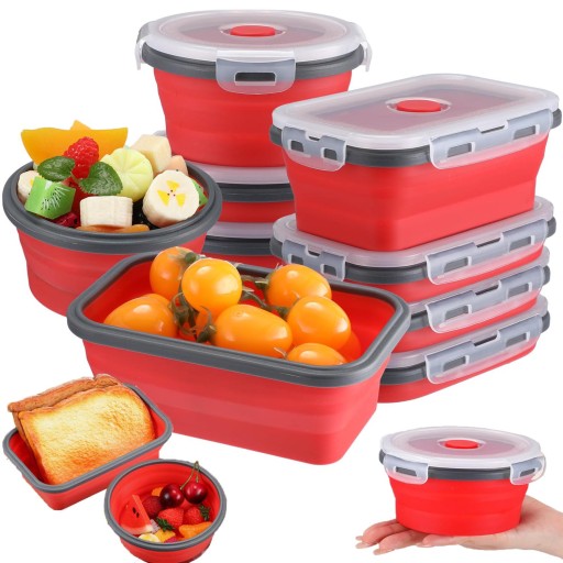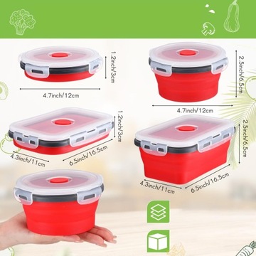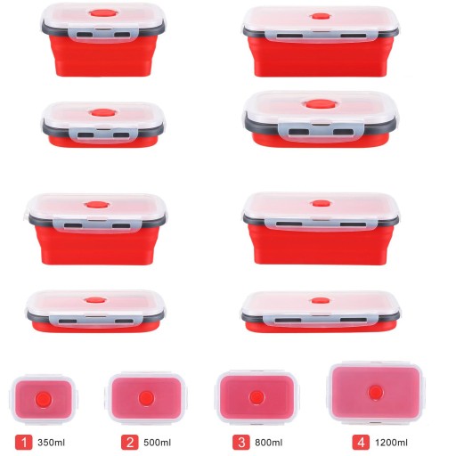 - Składane pojemniki do przechowywania wykonane są z wysokiej jakości silikonu, bez zapachu, bezpieczne w użyciu, niełatwe do złamania i rdzewienia, wielokrotnego użytku i trwałe, idealne do przygotowywania posiłków lub zestawów śniadaniowych.