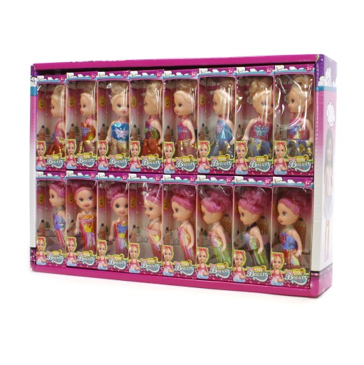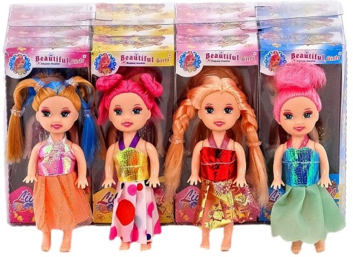 Lalki dostępne w róznych sukienkach, z kolorami włosków - ze względu różnorodność dostaw oraz ich pakowania, nie oferujemy możliwości wyboru okreslonego wzoru/koloru.