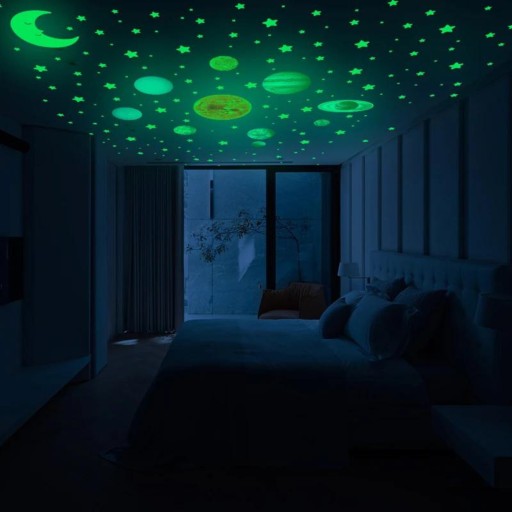 - Uspokajający efekt – Blask fluorescencyjnych naklejek tworzy kojącą atmosferę, idealną do relaksu przed snem.