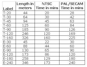 Poniżej przelicznik czasu nagrywania NTSC - PAL/SECAM