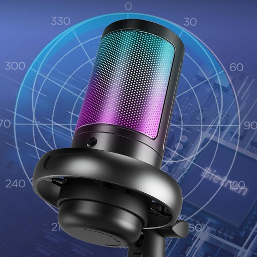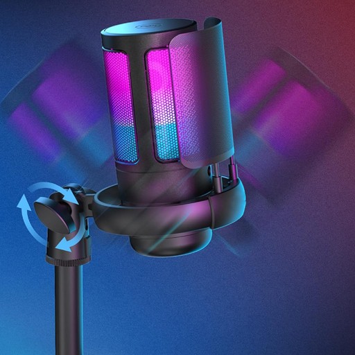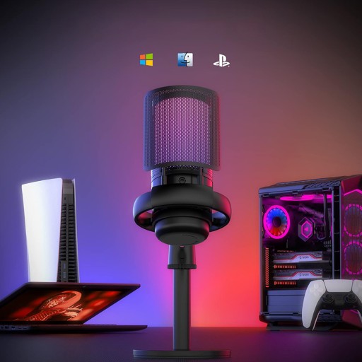 🎙️Dwukolorowy efekt oświetlenia RGB z gradientem kolorów przyciąga wzrok. (Uwaga: RGB zmienia się automatycznie i można je wyłączyć tylko w trybie cichym. Naciśnij długo przycisk wyciszenia, aby zmniejszyć jasność.)
