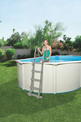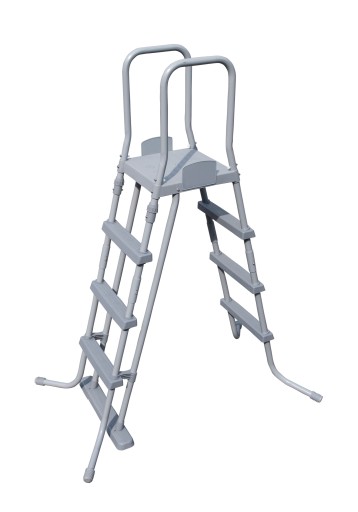 Drabinka przeznaczona jest do basenów do 122 cm wysokości. Antypoślizgowe stopnie z tworzywa oraz metalowe rączki ułatwią korzystanie ze sprzętu. Dzięki temu, że drabinka jest dwustronna, zapewnia wygodne wchodzenie i wychodzenie z basenu. Całość jest bardzo łatwa w montażu, współgra z każdym rodzajem basenu.