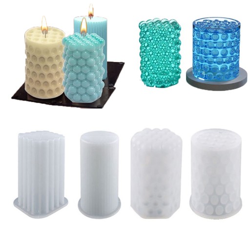 ✅ Formy do świec są dostępne w 4 stylach, cylindryczna forma do świec w paski, prostokątna forma do świec w paski, cylindryczna forma w kropki, sześciokątna forma do świec w kropki, różne style tworzą różne świece.