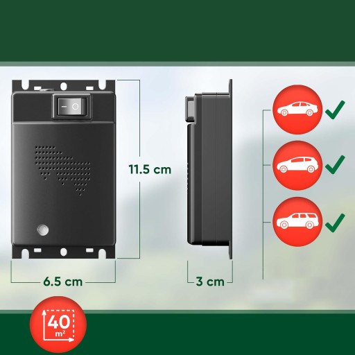 👍👍 UKIERUNKOWANE UŻYCIE: Jeśli nasz samochodowy odstraszacz kun jest zasilany bateryjnie zainstalowany w komorze silnika, prawie nie słychać hałasu na zewnątrz. Dla dodatkowej ochrony zalecamy zainstalowanie drugiego urządzenia na zewnątrz. Skuteczny obszar wynosi około 40 metrów kwadratowych